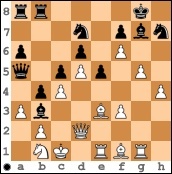 Als Top-Spiel wurde das Duell zwischen Günter Horny (Weiß) und Vorjahressieger Otto Reimer angesehen. Die beiden schenkten sich in einem Königsinder nichts, wie auch die wilde Stellung im Diagramm zeigt. Weiß hatte eine Figur geopfert und dafür starken Angriff erhalten. In der Partie wurde scharf weiter gespielt: 1. ... Lf8 2. Ld3 e4! - die Zuschauer warteten mit Spannung darauf, ob der Angriff durchdringen würde.