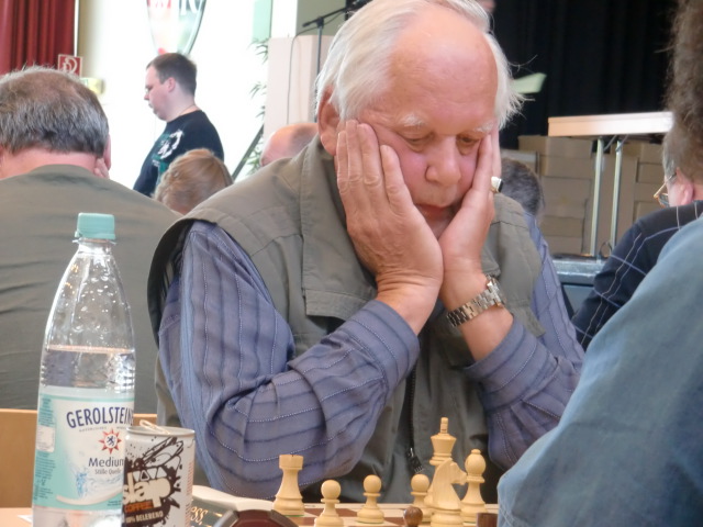 Helmut Desor zeigte eine starke Verteidigungsleistung gegen Otto Reimer. Mit 50% liegt er jetzt gut im Rennen. Er hat übrigens auch in der Oberurseler Meisterschaft, die ja mit Bad Homburgern gut bestückt ist, ebenfalle 1½ Punkte - dort aber aus 2 Partien.