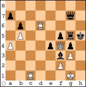 Unglücklicherweise zogen nun dunkle Wolken über dem Kurhaus auf, als Hellmuth Lebermann leichtfertig seine Mehrqualität zurückgab und die Partie ins Remis entglitt. Für Otto Reimer kam es noch dicker, da dessen König, trotz Materialvorteil, stark unter Beschuss stand und schließlich in einem unparierbaren Mattangriff unterging. Das Bild, das sich lange Zeit über die Manöver um die Zeitkontrolle herum hielt, ist im Diagramm festgehalten: Beide Könige stehen auf Matt - wobei der Schwarze König auf der h-Linie halbwegs sicher steht, andererseits das Eindringen einer Schwerfigur über diese Linie verhindert. Leider änderte sich das später...