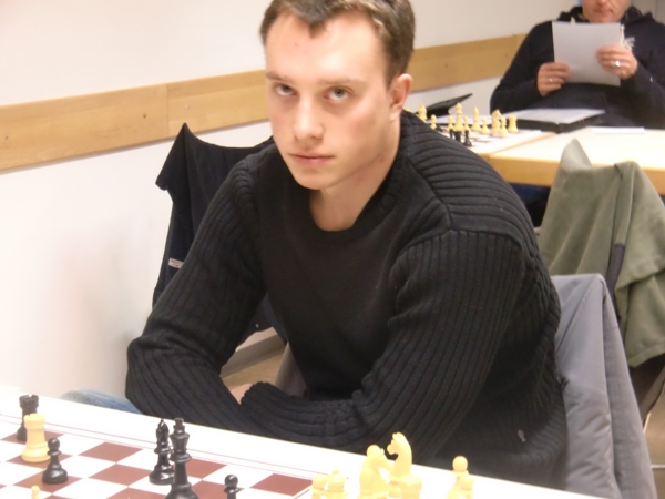 Benjamin Kilb spielte die längste Partie des Tages: Remis nach komplizierten Verwicklungen im Endspiel gegen einen mit 300 DWZ Punkten höher dotierten Gegner.