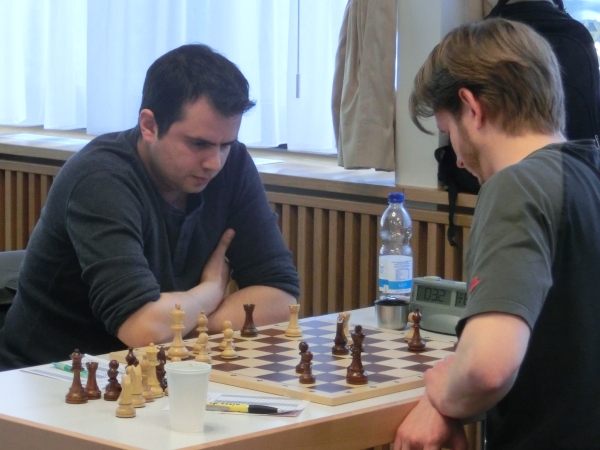 Ralf Dunsbach mit Weiss noch vor der Zeitnotphase: Mit Läuferpaar und unsicherem gegnerischem König rechnete er sich Siegchancen aus, aber leider wurde daraus nichts.