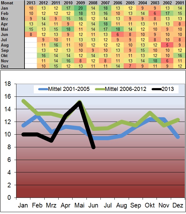 Die Teilnehmerzahlen im Blitz: Das Jahr 2013 muss noch ein bißchen an sich arbeiten!