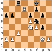 Gut, dass da schon Ingo Hanemann seinen Gegner mattgesetzt hatte: In der linken Diagrammstellung ist offensichtlich, dass alles auf einen beidseitigen Rochadeangriff hinauslaufen wird. Mit 22. Tc3 nebst folgendem Figurenangriff hätte Weiß Vorteil behalten - aber er hatte nur noch 8 Minuten auf der Uhr und entschied sich für 22. h4?.