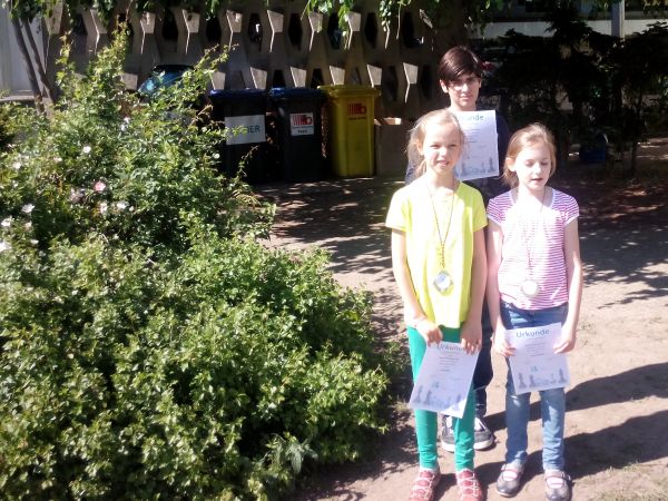 Fenja, Jelena und Philippe mit Urkunden nach dem Turnier.