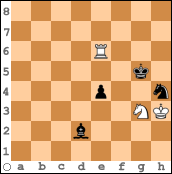 ![]() Nr. 211 Keller-Barthel 48. Te5+! Kf6 49. Tb5! Sf3 50. Sxe4! Kg6 51. Kg3 |