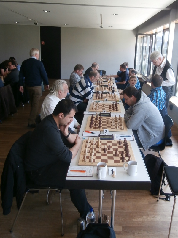 Nach verhaltenem Start zeigten sich nach der ersten Spielstunde bereits einige Tendenzen, die auf einen schwierigen Kampf Kampf hinwiesen. Am Spitzenbrett hatte Ramat Faqiry eine gedrückte Stellung, die er sich bereits in der Eröffnung einhandelte. Besser sah es für Hellmuth Lebermann aus, der als Schwarzer den weißen Königsflügel direkt unter Beschuss nahm. Jan Goetz stand ebenfalls optisch überlegen, während sich Paul Lenhart mit dem deutschen U 12-Vizemeister Oliver Stork auseinandersetzen musste und bei vollem Brett keine Tendenz auszumachen war.