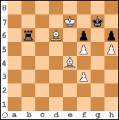 In der Diagrammstellung - es war 20:30 Uhr und 6½ Stunden gespielt - gelang ihm eine hübsche Zugzwangsstellung: 83. Lc5! Ta6 84. Ld4 und Schwarz musste den Bf6 abgeben: Das Ende.