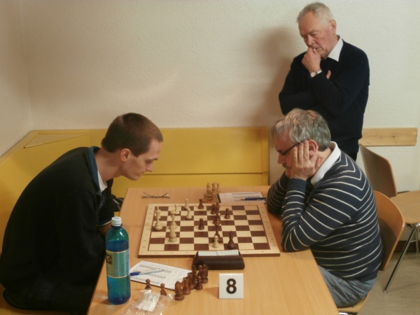 Helmut Heiming hatte sich der Katalanischen Eröffnung zu erwehren. Mit gewohnt stoischer Ruhe und Konzentration konnte er die gegnerischen Aktionen unterbinden, was zwar am Ende einen Bauern kostete, der aber nicht zu einem Sieg verwertbar war. Also Remis.