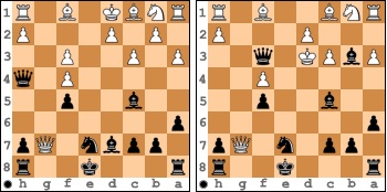 Dabei gelang insbesondere Sarah mal wieder eine wirklich sehenswerte Mattkombination. In der Diagrammstellung hatte sich ihr weißer Gegner soeben den Bauern auf g7 einverleibt. Doch nun gab es nach 1. ... La4+ 2. b3 Lxb3+ 3. Ke2 Df2+ 4. Kd3 Dxf3# kein Entrinnen mehr für den schwarzen Monarchen.