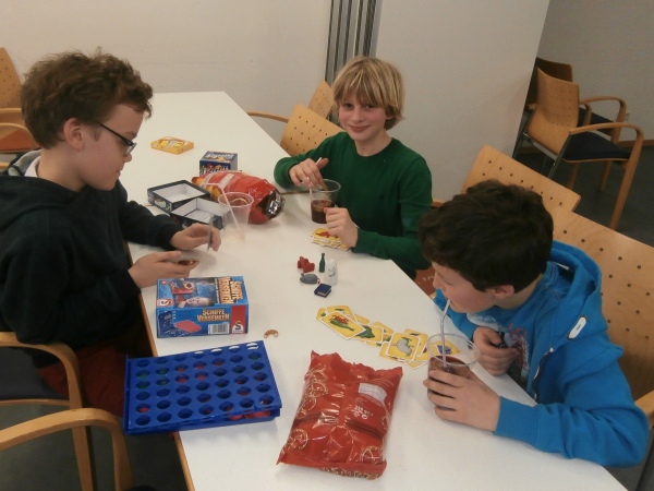 Nach dem Abendessen gab es dann die offizielle Eröffnung mit ein paar organisatorischen Hinweisen und anschließend einen Spieleabend mit Saftcocktailversorgung durch das Team der HSJ. Bettruhe für die U12 und U14 ist um 22:00 Uhr und für alle anderen um 23:00 Uhr, aber während ich hier so sitze und diesen Bericht schreibe, könnte man meinen das zumindest ein paar der „älteren“ Jungszimmer die Umstellung auf die Sommerzeit verpasst haben. Na ja, das muss am Eröffnungsabend wohl auch so sein