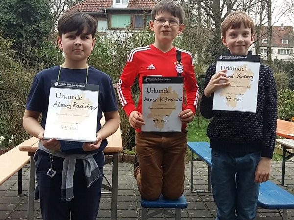 Im Endergebnis haben die 3 Jungs somit eine solide Mannschaftsleistung gezeigt. Jeder von ihnen hat 2½ Punkte und viel wertvolle Turniererfahrung gesammelt. Im Endklassement belegen sie damit die Plätze 44, 45 und 47 bei 58 Teilnehmern. Prima gemacht Jungs, darauf lässt sich aufbauen!