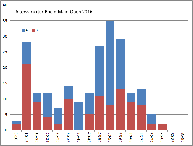 Die Altersstruktur des Rhein-Main-Opens: Wieder zwei klare Häufungen im Bereich der Teens und der Middle-Ager!