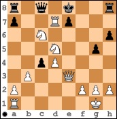 Dieser erste Durchgang endete mit einem 4:0 Sieg für die in der Aufstellung Rafael, Robin, Cornelius und Daniel angetretenen Bad Homburger. Hierbei gelang Rafael ein sehenswerter Angriff, der ihn (Weiß) nach 27. ... Dxd7) mit dem Damengewinn belohnte.