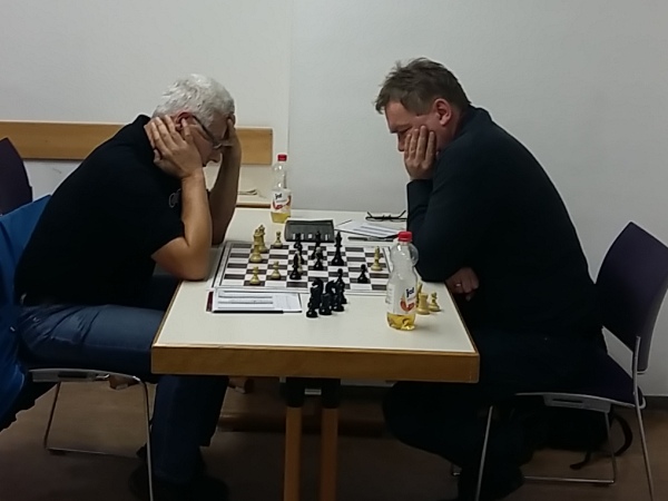 Ein Bild aus der Schlussphase der Partie. Richard Kaiser (l.) wird gerade Vereinsmeister.