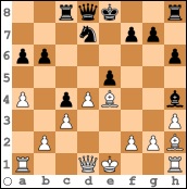 Letzterer konnte seine Partie überraschend einseitig - und positiv - gestalten. In der Diagrammstellung folgte 20. Lb7 mit Gewinnstellung und der schwarze Versuch 20. ... Df6 21. g3 machte alles nur noch schlimmer! 6 Züge später gab Schwarz auf. Mit diesem klaren Sieg unseres Neuzugangs hatten wir nicht gerechnet, so dass der Mannschaftskampf nach über 6 Stunden äußerst spannend wurde.