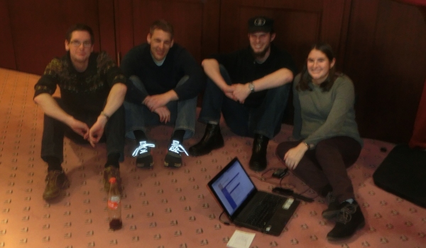 Die jungen Leute des SK Gernsheim machen es sich nach getaner Arbeit auf dem Boden des Kurhauses bequem - und stellen die Ergebnisse praktisch live ins Internet und ihre WhatsApp-Gruppe ein.