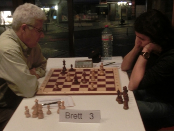 Richard Kaiser (l.) gewann sicher, nachdem er ein Figurenopfer seines Gegners überlebt hatte.