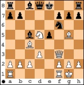 Sarah brauchte auch nicht viel mehr Züge. Sie hatte sich im Gegensatz zu ihrem Gegner vorbildlich entwickelt und konnte in der Diagrammstellung nach 10. ... 0-0 erst den schwarzen Springer gewinnen, 5 Züge später die schwarze Dame und weitere 4 Züge später war der schwarze Gegner Matt.