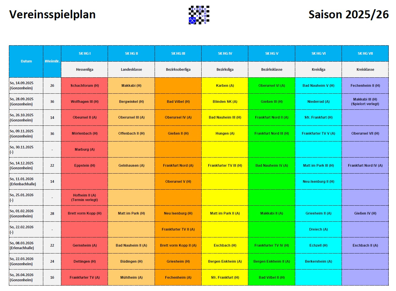 Der Schachklub Bad Homburg nimmt in der Saison 2025/26 an folgenden Liga-Wettbewerben teil.