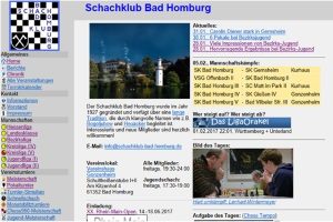 Der bisherige Internet-Auftritt des Schachklubs Bad Homburg gehört zu denen mit der längsten Historie unter den deutschen Schachvereinen. Schon 1998 wurde die Seite registriert und - ab 2006 verstärkt - mit Inhalten befüllt.