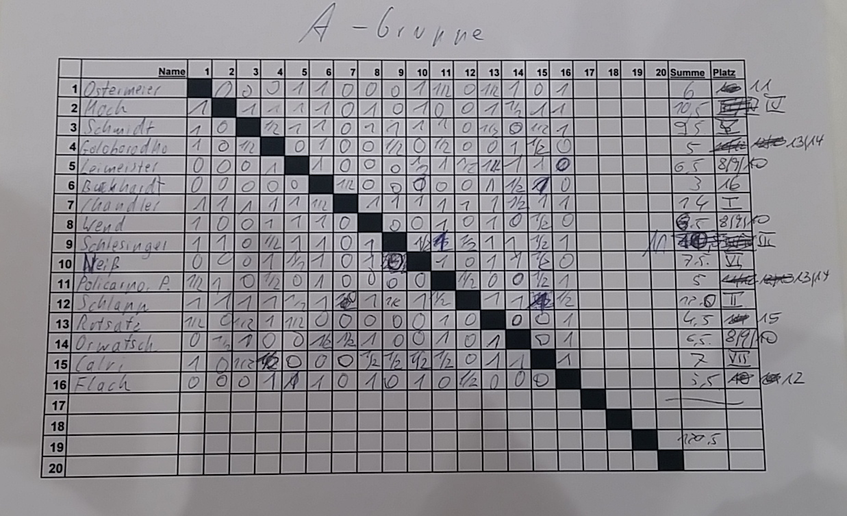 Einziger Kurstädter war Walter Schmidt, der aufgrund seiner DWZ-Verdienste im klassischen Schach sogar auf Eins gesetzt war. Aber natürlich gehörte er trotz einiger kürzlicher Lichtblicke nicht zu den Favoriten.