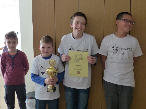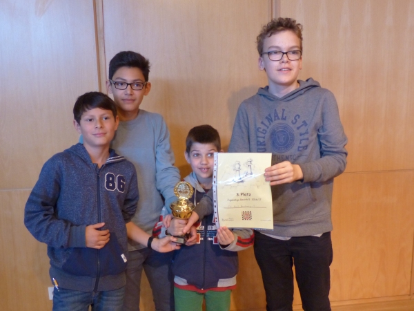 Die Mannschaftsserie für jugendliche Anfänger (Idee: DWZ bis 1000, Einführung in das Turnierschach) wurde klar von Oberursel 1 gewonnen, aber gleich auf den beiden nächsten Plätzen folgten die beiden Bad Homburger Nachwuchstalente. Ein sehr schöner Lohn für die intensive Arbeit, die der Schachklub seit Jahren in den Schülerbereich steckt.
