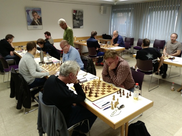 Allgemeines Aufatmen, denn Mannschaftsführer Manfred Kroth musste seine hoffnungslose Stellung bald aufgeben - und keiner wollte haben, dass alles an der ausgeglichenen Partie von Helmut Heiming hängt. Nun, auch diese wurde schließlich zum 5½:2½-Endstand remis gegeben.