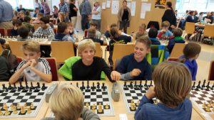 Felix gewann 5 aus 7, und wurde letztlich 4. in der U8. Hier zeigte sich eine Auswirkung des Schweizer Systems: Felix war im gesamten Turnier an Position 2 oder 3, so auch vor der siebten Partie. Diese gewann er, rutschte aber dennoch auf Rang 4, weil sein direkter Konkurrent Maximilian ebenfalls überraschend gegen die Nummer 1 gewann. Felix und Max hatten dann die gleiche Buchholzwertung, aber Felix die leicht geringere SoBerg-Wertung. Etwas schade war, dass Felix in der ersten Runde durch einen Auslosungsfehler einen Gegner zugelost bekam, der nicht angereist war - somit hatte er an Brett 3 spielfrei (und dadurch fehlten im in der Endabrechnung wichtige Buchholzpunkte). Dennoch war seine Freude nicht getrübt, denn Max war mit seinem 3. Rang ein würdiger Pokalsieger, und Felix hatte durch einen tollen Sieg in der 3. Runde (zufälligerweise gerade gegen den auf dem Papier stärkeren Max) eines der begehrten Krokodile gewonnen!
