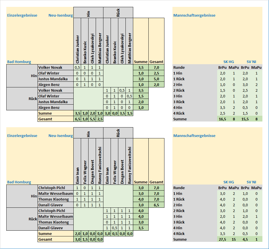 | 41. | 13.03.2021 | 14:00- ca. 15:45 | Vergleichskampf SV Neu-Isenburg | Vereinsmitglieder | 5+3 | Ergebnisse |