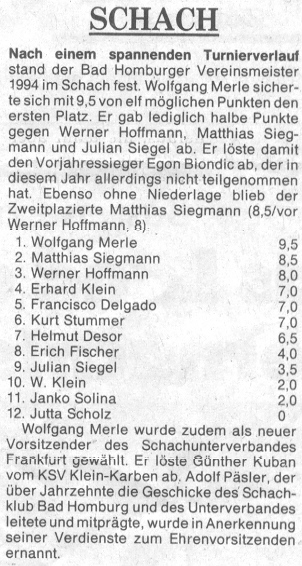| Jahr | Vereinsmeister | Pokalsieger | Blitzmeister | Jugend-Vereinsmeister | Seniorenmeister |