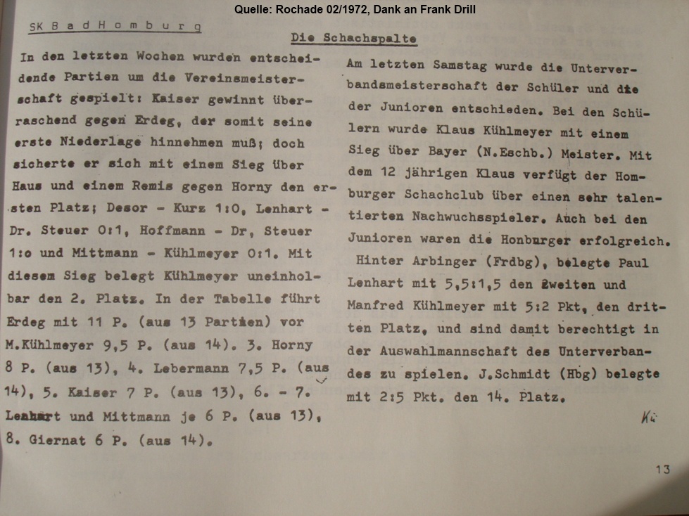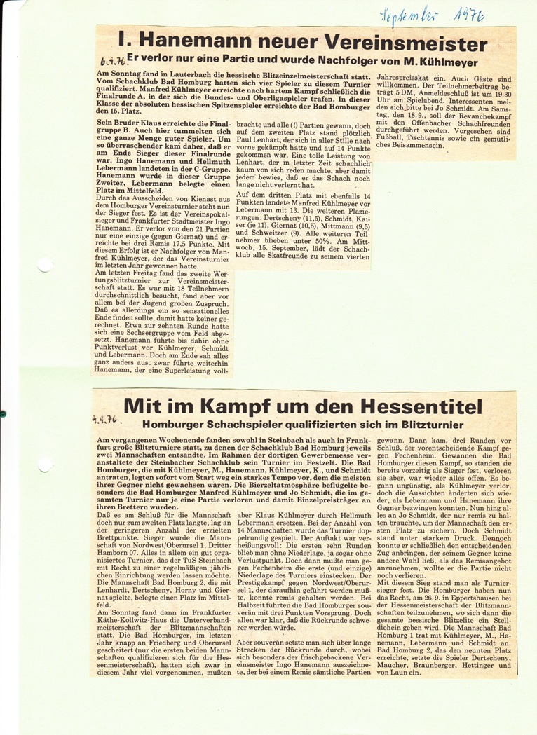- Teil B: Jugendblitz, Chess960, Schnellschach, Turniersimultan, Frühsommer-Cup. Tandem-Blitz