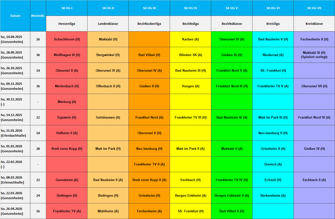 Der Schachklub Bad Homburg nimmt in der Saison 2025/26 an folgenden Liga-Wettbewerben teil.