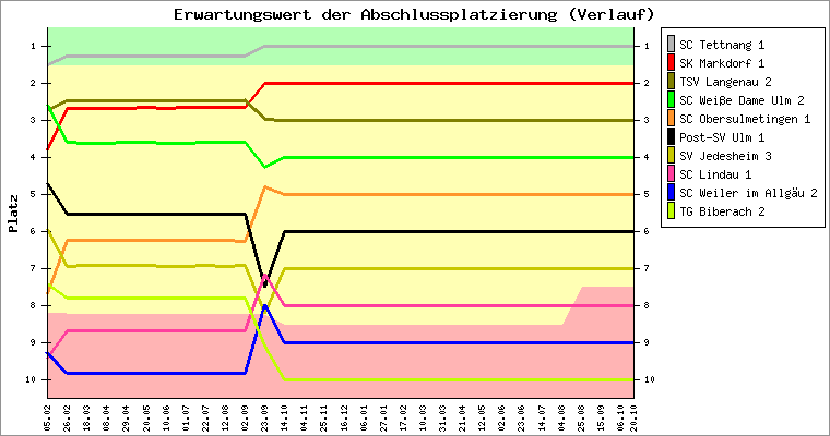 4. SC Weiße Dame Ulm 2 9 10 37,0 Bezirksliga Nord